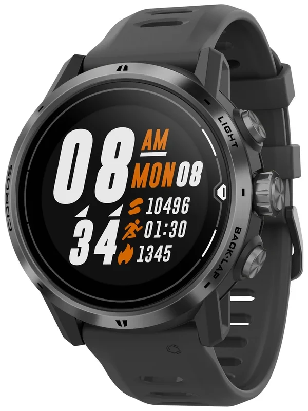 The mountain-ready COROS APEX Pro Premium Multisport GPS Watch combines elevation data with advanced training features to help you crush all of your trail runs. Designed for ultrarunners and triathletes alike, the APEX Pro offers an astounding battery life, multi-sport tracking, highly durable titanium frame and sapphire lens, and easy to use controls. Updates from the standard APEX watch include an oximeter and Altitude Mode that monitors your blood oxygen (SpO2)Â acclimation in elevation and issues safety warnings if necessary. Another notable update is Multi-day Workout which lets you pause your activity and resume it at a later time while still allowing standard watch functionality. Improvements were also made to the controls, making it easier to navigate using either the new touchscreen or its enhanced control knob.