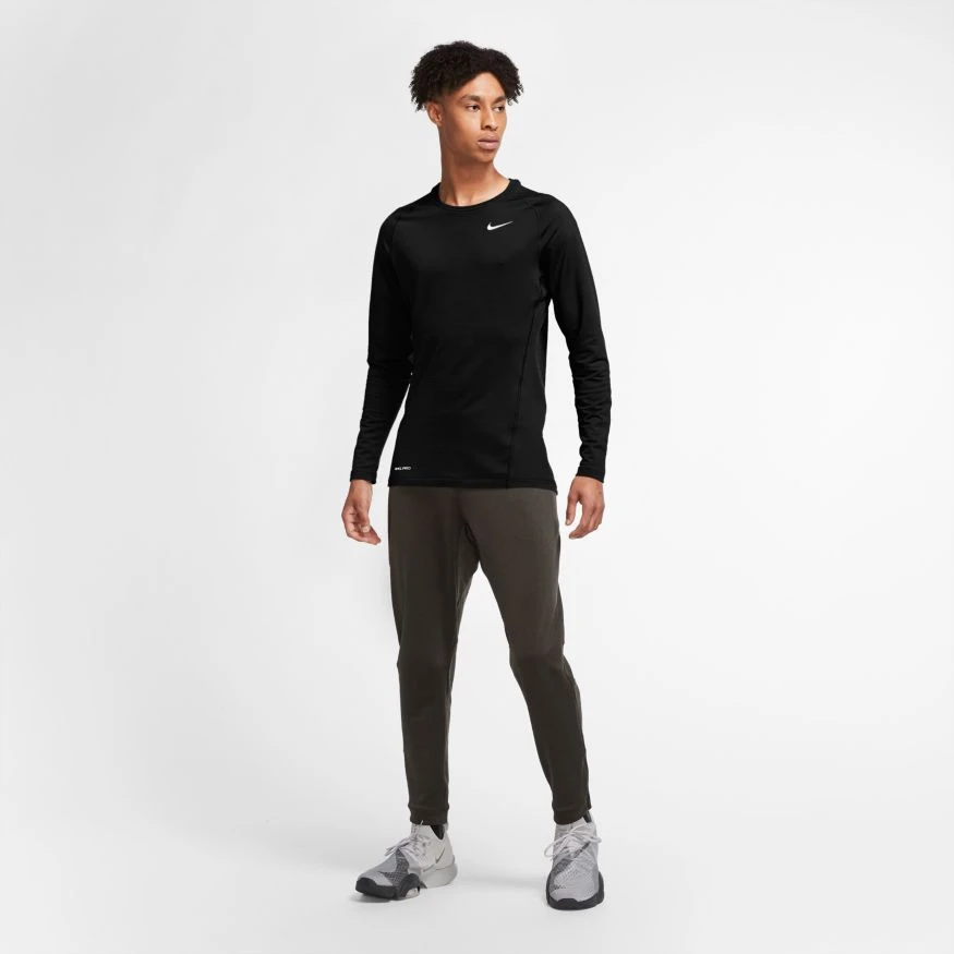 Ideal for wear on its own or layered under a uniform, the Nike Pro Warm Top helps keep you warm and moving naturally. Ribbing in key areas allows flexibility where you need it. This product is made with at least 75% recycled polyester fabric.