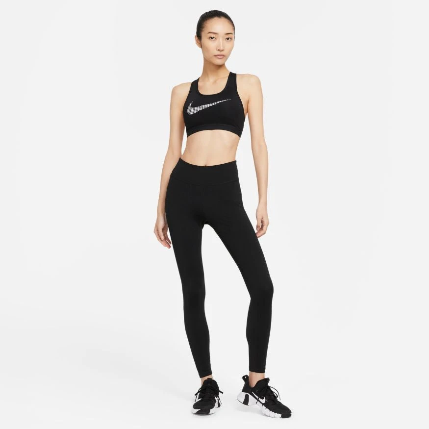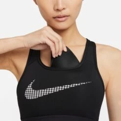 With wide, comfy straps in a classic racerback design, the Nike Dri-FIT Swoosh Icon Clash Sports Bra feels snug and secure while you move. Smooth, lightweight fabric wicks sweat to keep you dry, comfortable and focused. For every rep, step and jump—know that you’re supported. It’s made with at least 75% recycled polyester fibers.